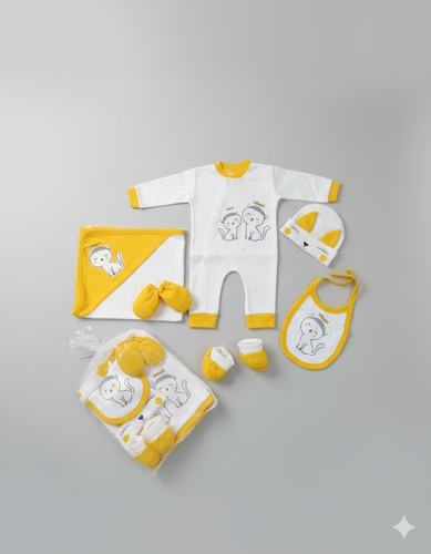 سیسمونی نوزاد ست نوزادی هفت تیکه بیمارستانی نوزاد طرح خرس رنگ زرد