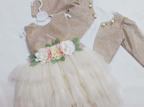 لباس مجلسی دخترانه کت و سارافون دخترانه لمه مناسب ۴ تا ۷ سال رنگ کرم