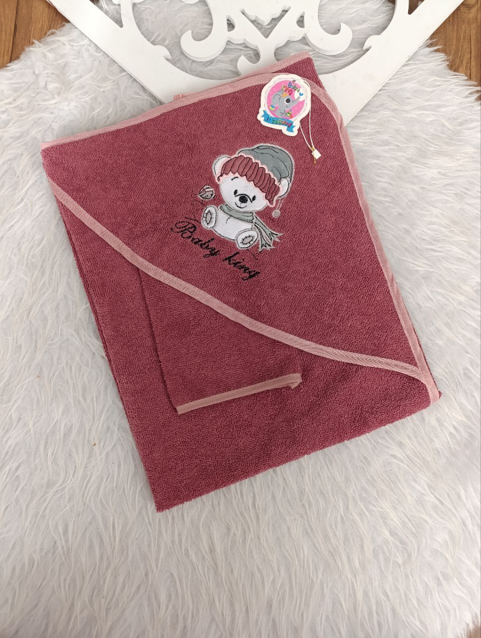 ست حوله و لیف کودک طرح خرس شالگردن دار رنگ بنفش