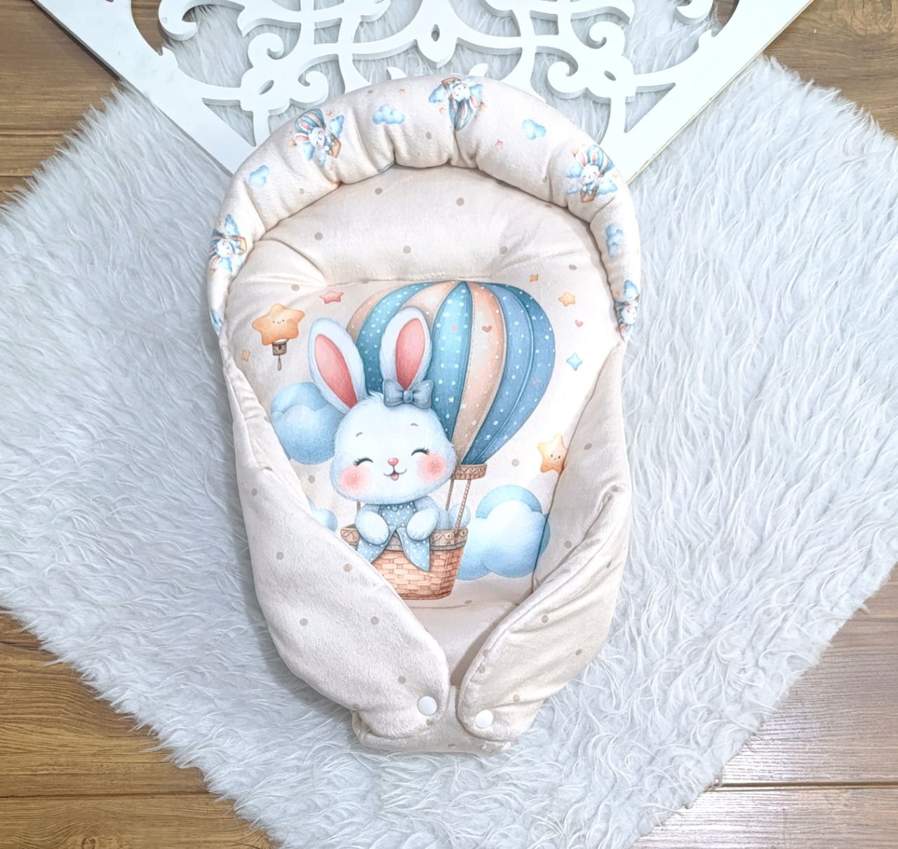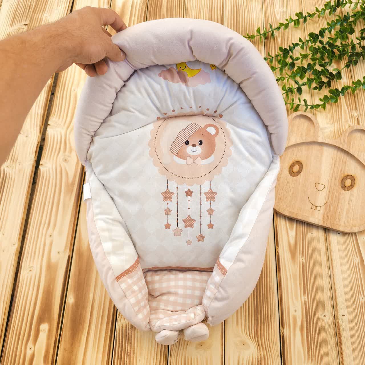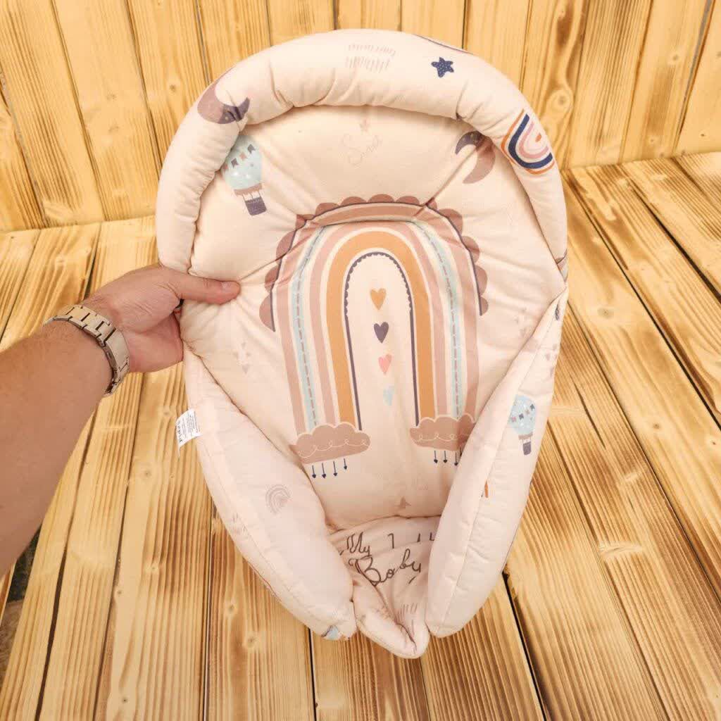 آغوشی یا قنداق سوییسی جنس مخمل چاپی رنگ کرم