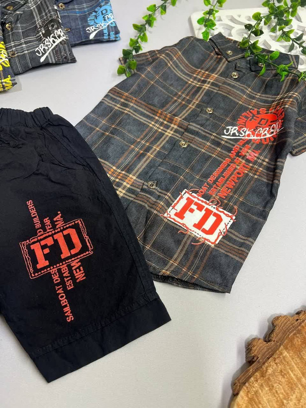 نام کالا : پیراهن شلوارک پسرانه چهارخانه حروف انگلیسی