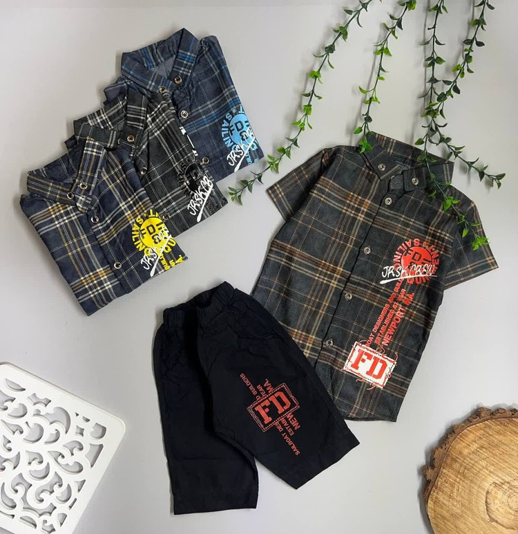 نام کالا : پیراهن شلوارک پسرانه چهارخانه حروف انگلیسی
