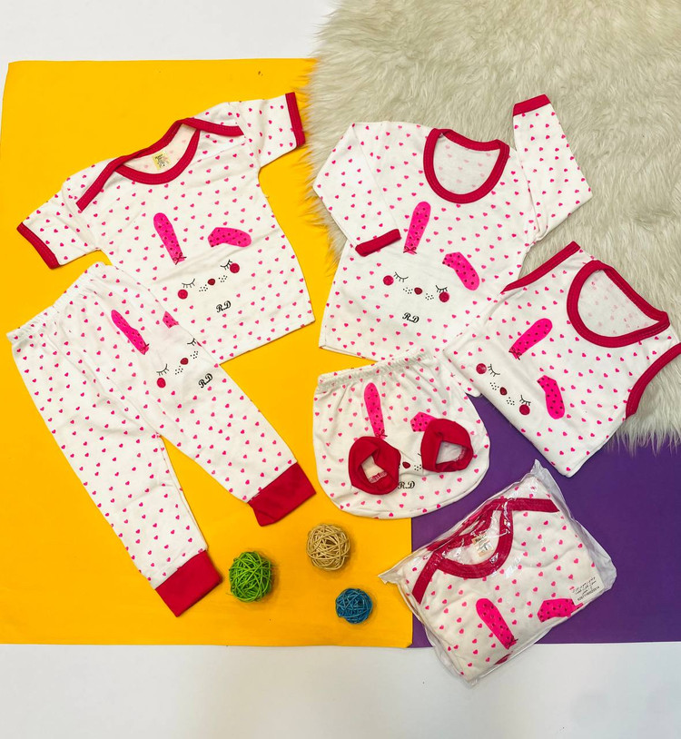 پنج تیکه نوزادی طرح چشمک سایز ۱ تا ۳ نرم و لطیف