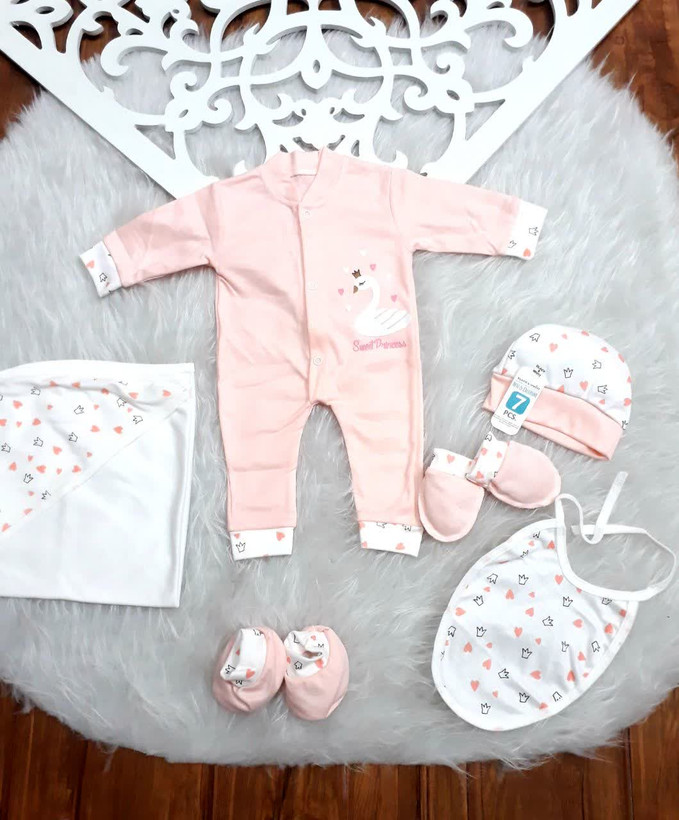 لباس نوزادی ست بیمارستانی نوزادی دخترانه هفت تیکه
