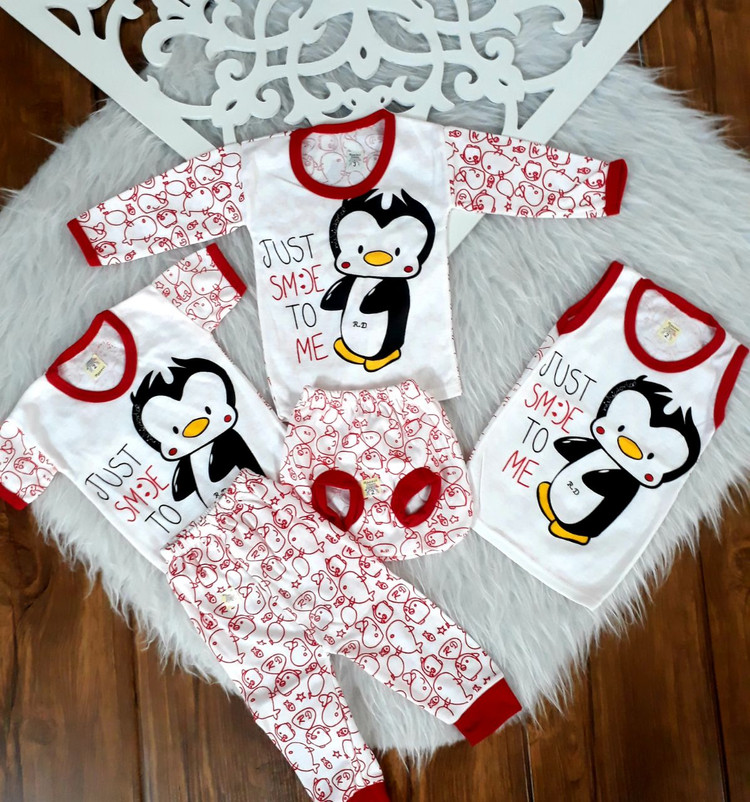پنج تکه نوزادی طرح پنگوئن سایز ۱ تا ۳ لباس نوزادی