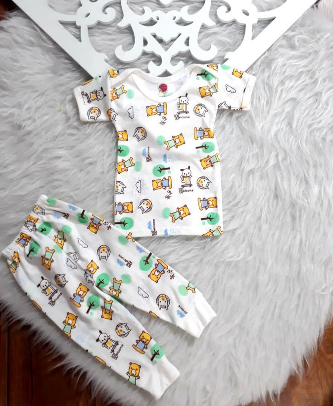 خرید و قیمت تیشرت و شلوار نوزادی طرح استیکر سایز ۱ تا ۳ نرم و لطیف