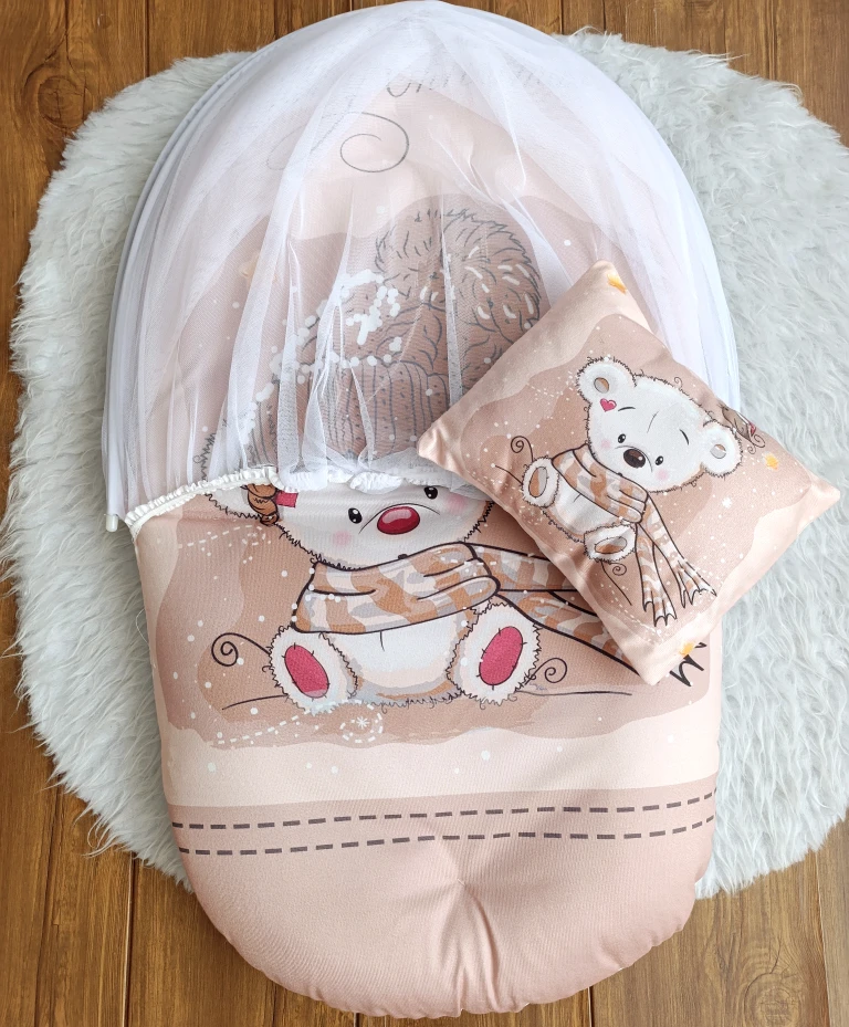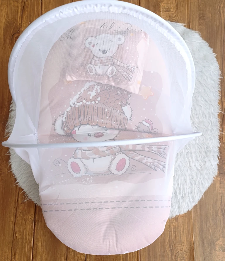 پشه بند نوزادی تشک و بالشدار مخمل مدل خرس | سیسمونی شیدا