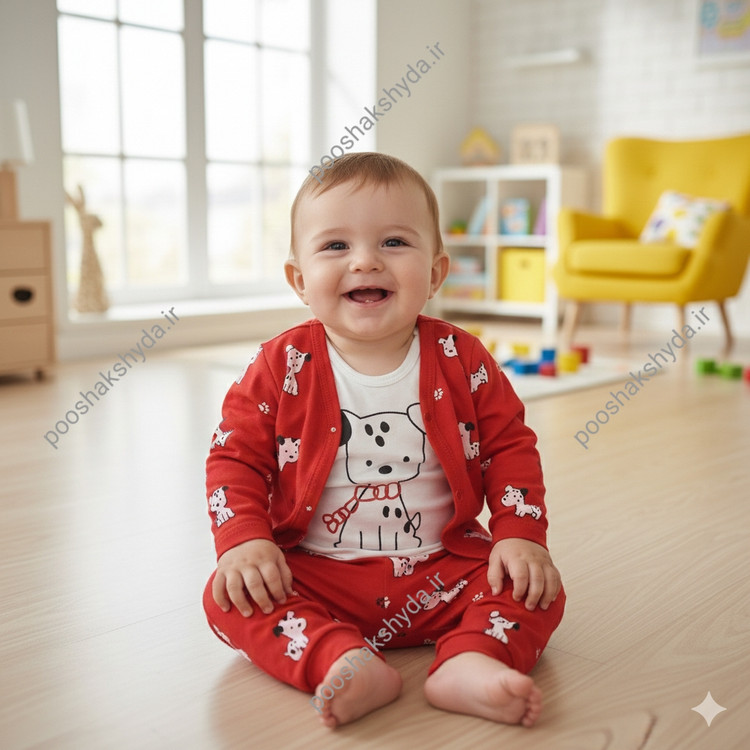 سه تیکه نوزادی بادی و شلوار نوزادی سایز۱ تا۳ رنگ قرمز