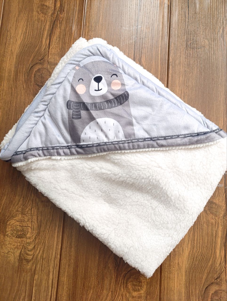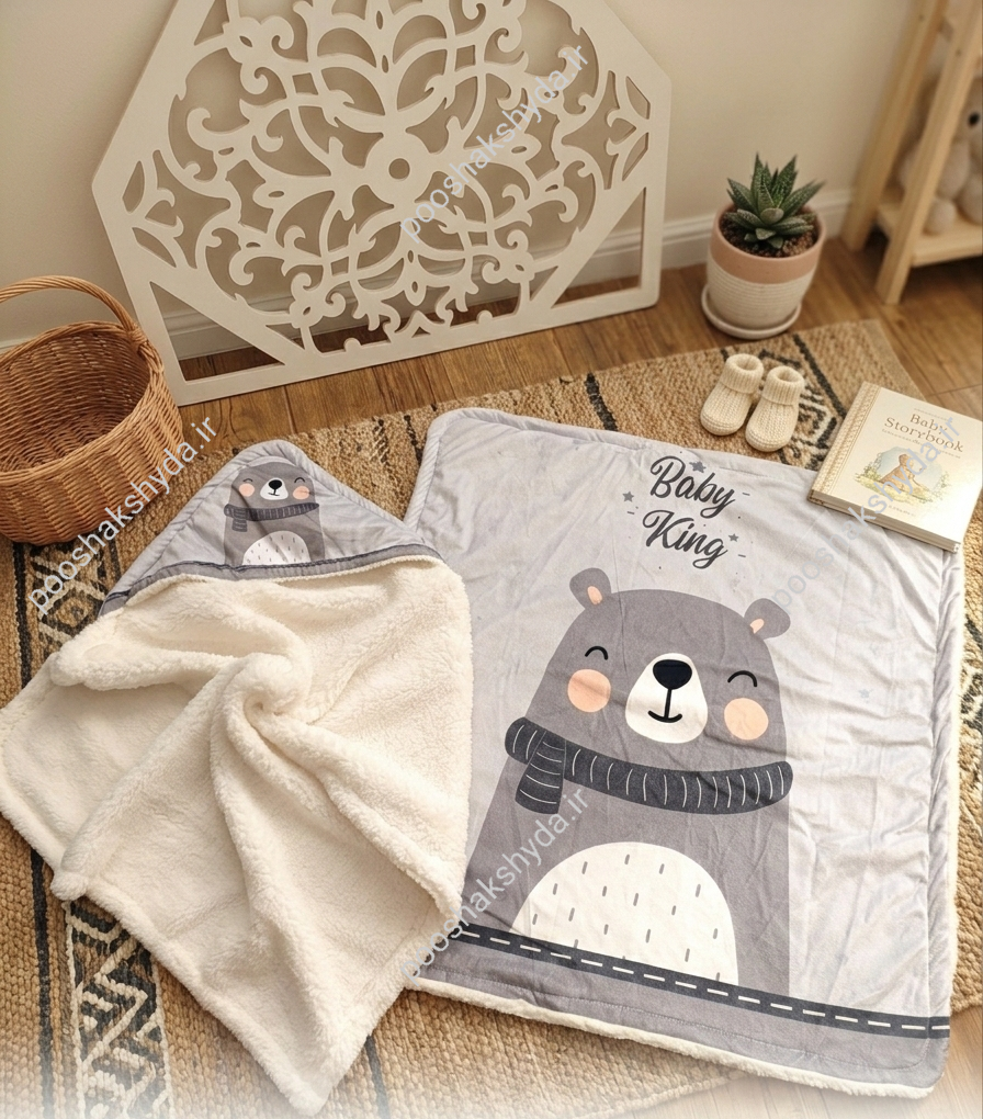 پتو دورپیچ نوزادی مخمل چاپی داخل خز طرح خرس