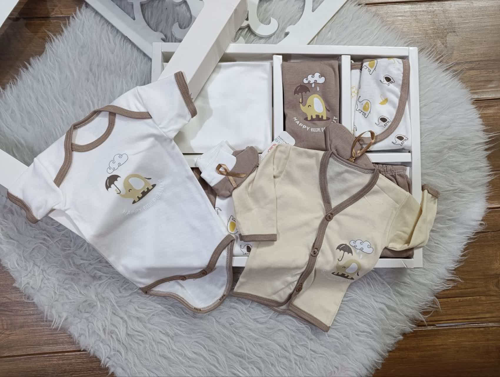 ۱۹ تیکه نوزادی سایز صفر شامل:استبن بلند دکمه دار -استین بلند- رکابی -تیشرت- تیشرت زیر دکمه دار – شلوار-شلوار جوراب دار-دوتا جوراب-دستکش-کلاه-روسری-کلاه بندی-نافبند-دستمال دهان -ملافه-پیشبند-شورت عینکی جنس پنبه