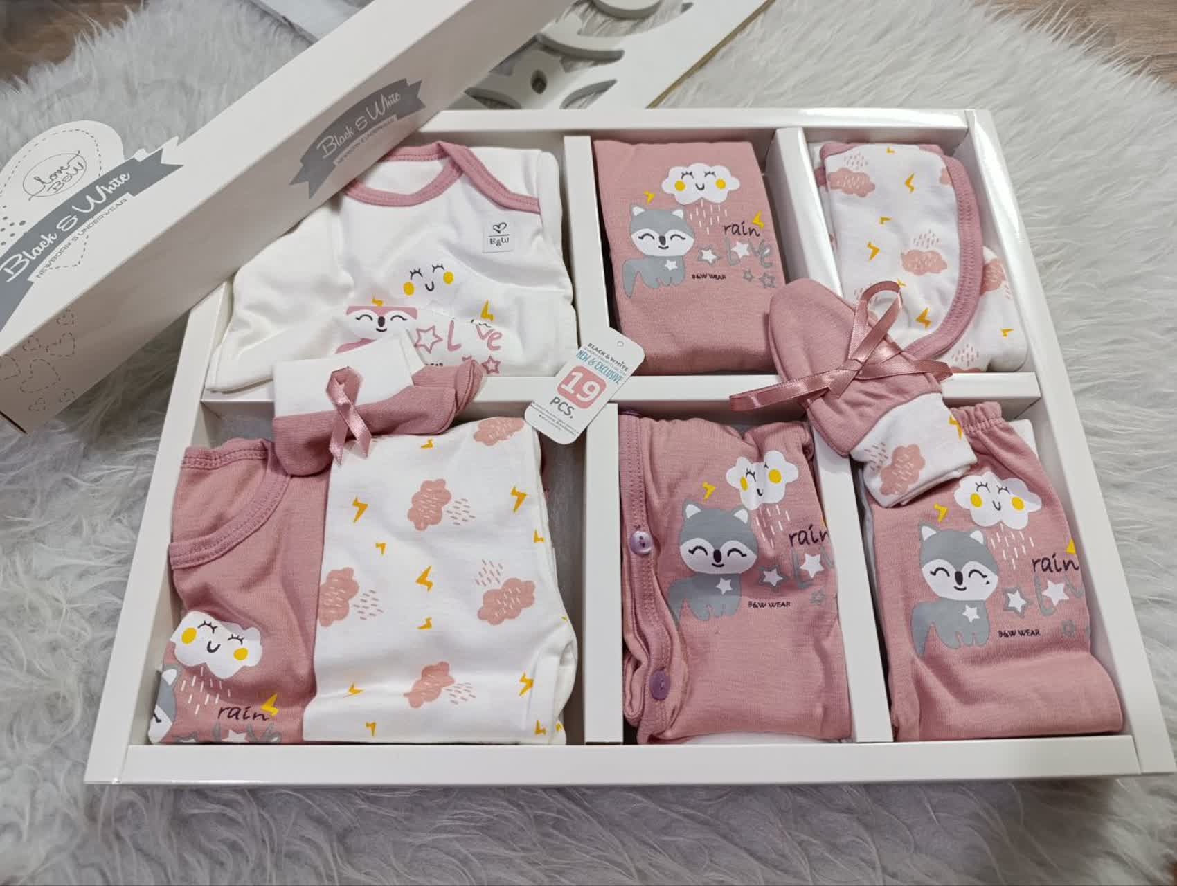 شامل:استبن بلند دکمه دار -استین بلند- رکابی -تیشرت- تیشرت زیر دکمه دار – شلوار-شلوار جوراب دار-دوتا جوراب-دستکش-کلاه-روسری-کلاه بندی-نافبند-دستمال دهان -ملافه-پیشبند-شورت عینکی