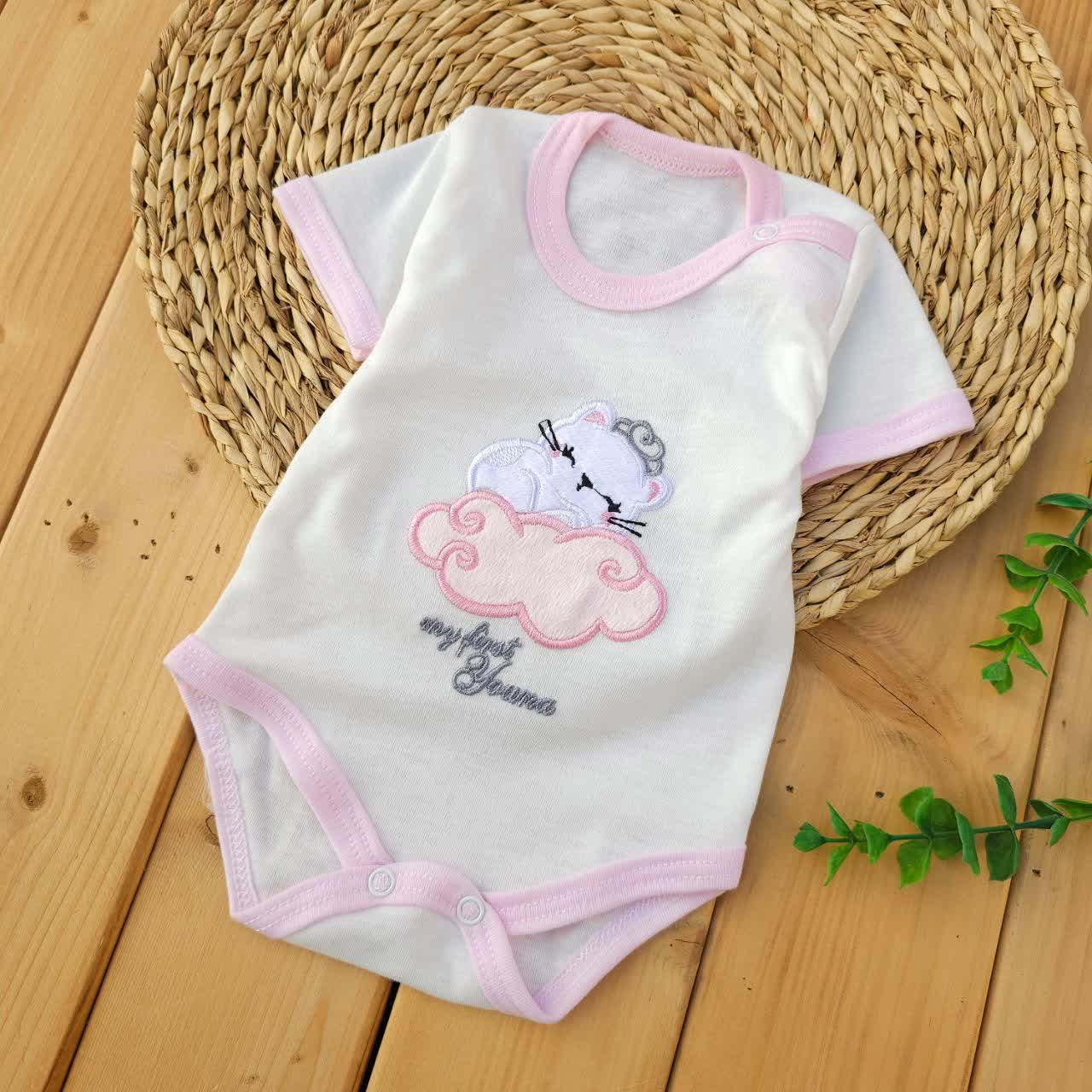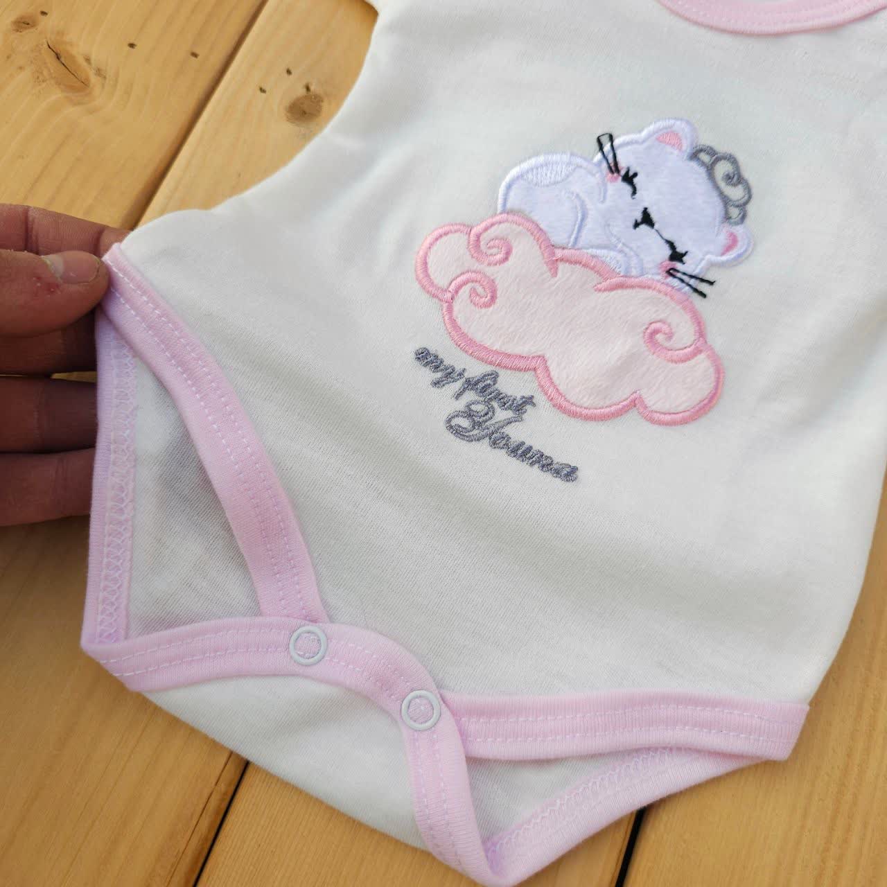 سرویس ۵ تکه گلدوزی شده دخترانه یونا سایز ۰ تا ۲ رنگ صورتی