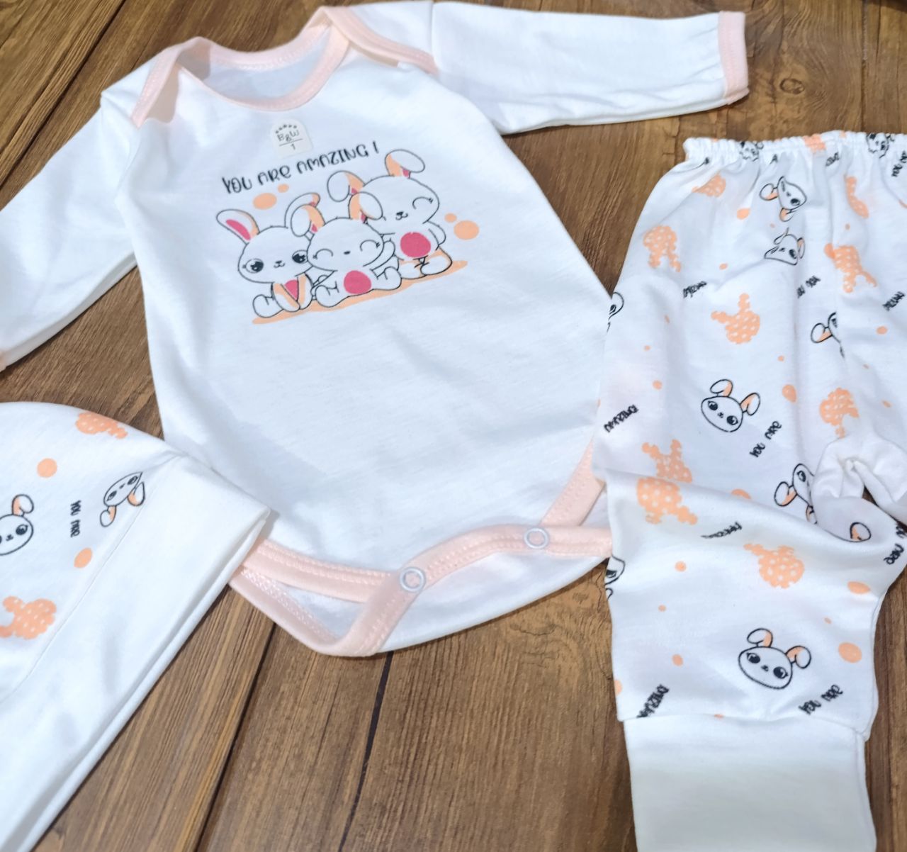 ست نوزادی دخترانه سه تیکه بادی و شلوار و کلاه سایز ۱ تا ۳