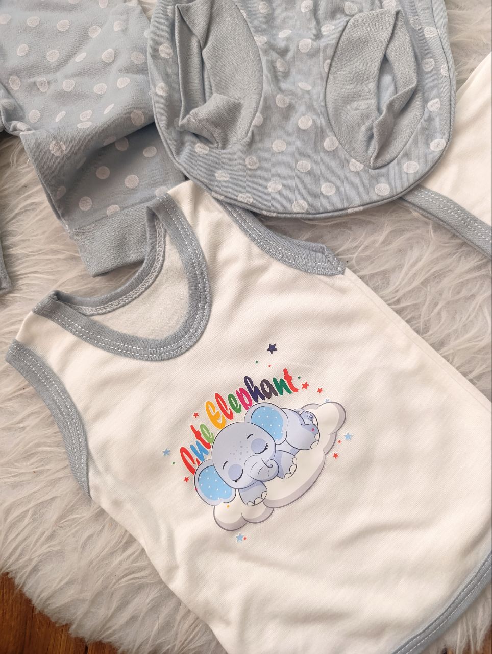ست پنج‌تکه نوزادی پسرانه طرح فیل کوچولو – سیسمونی شیدا