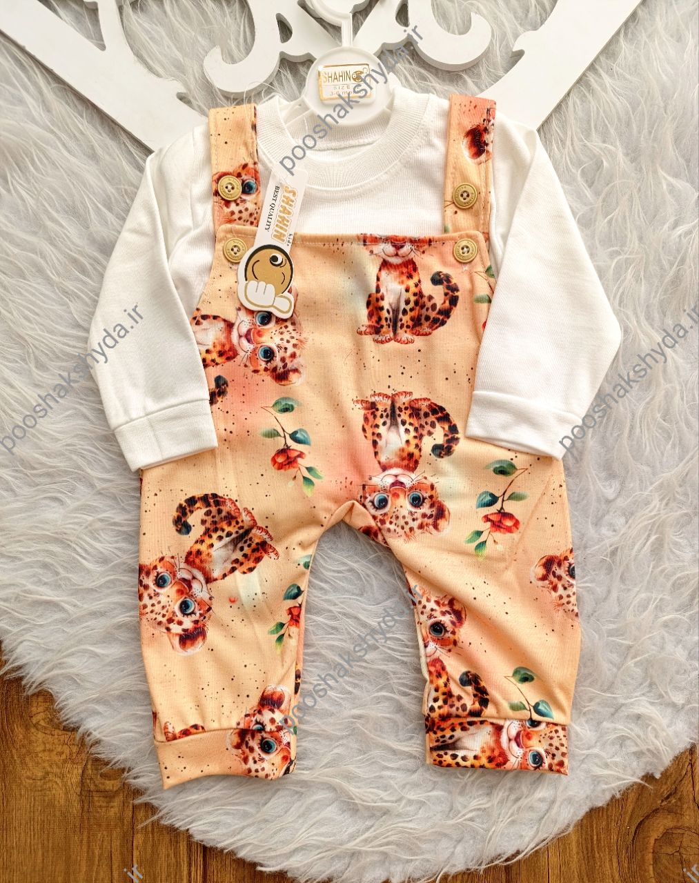 سرهمی نوزادی طرح پلنگ همراه با بلوز سفید – سایز ۱ تا ۳ | سیسمونی شیدا