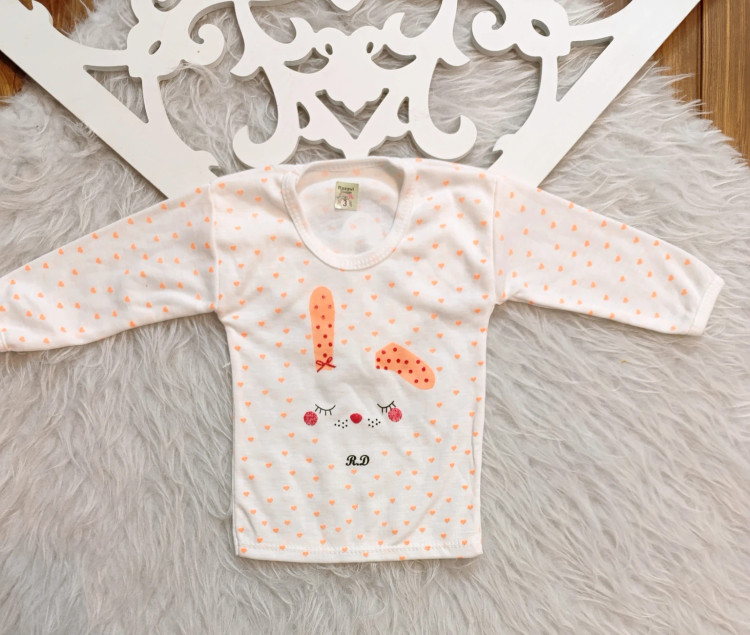بلوز آستین بلند نوزادی طرح قلبی سایز ۱ تا ۶ رنگ گلبهی