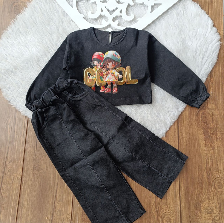 کراپ و شلوار لی دخترانه سایز ۴۰ تا ۵۵ رنگ ذغالی