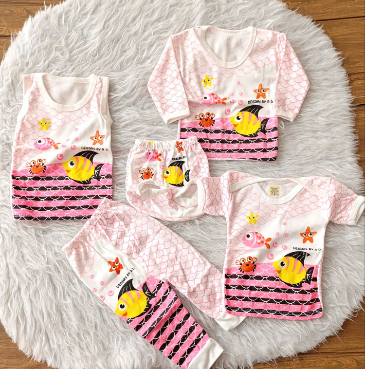 پنج تیکه نوزادی طرح ماهی سایز ۱ تا ۳ -مناسب سیسمونی نوزاد
