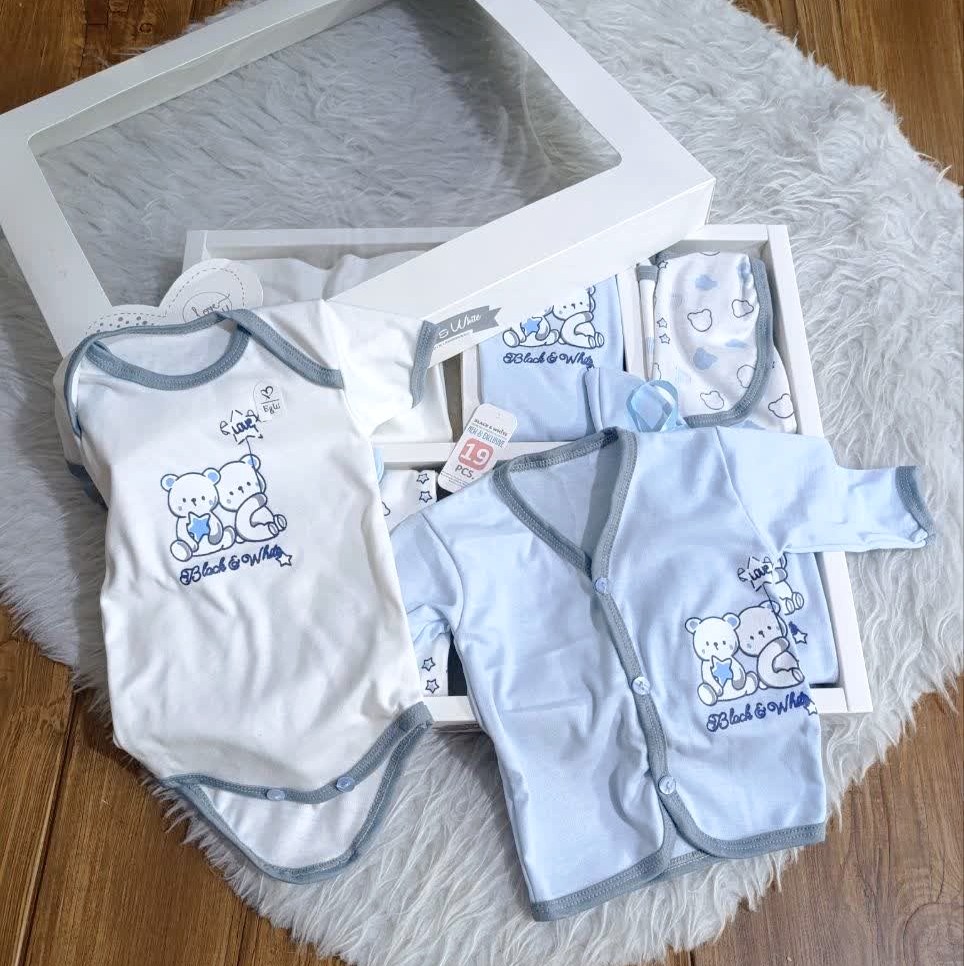 ست 19 تکه نوزادی شیدا طرح دوخرس پسرانه از جنس پنبه ـسیسمونی شیدا