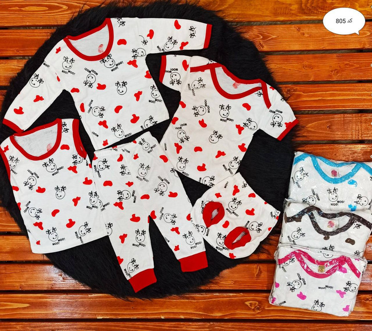 پنج تیکه نوزادی سایز ۱ تا۳سیسمونی شیک طرح کله گاو