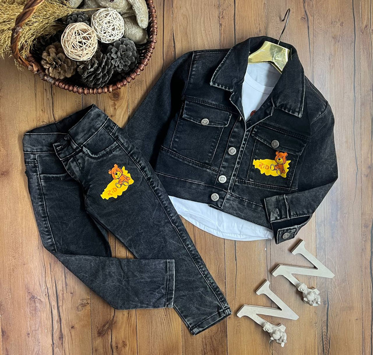 سایز ۴ :پهنای تیشرت ۳۴ قد تیشرت ۴۷ قد شلوار ۶۸ پهنای کت ۳۷ قد کت ۴۴ قد آستین ۴۳