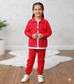 ست ۳ تکه کتان دخترانه مدل "Best Girl" (کت، شلوار و تیشرت) - قرمز سایز ۵۰ و ۵۵