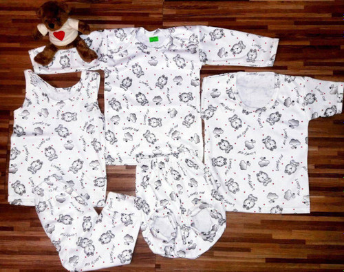لباس نوزادی پنج تیکه نوزادی طرح زنبوری سایز ۱ تا۶ سیسمونی نوزادی