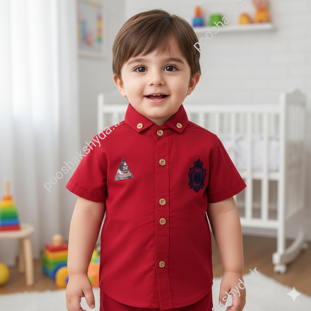 پیراهن آستین کوتاه پسرانه مدل کلاسیک (قرمز) - سیسمونی شیدا