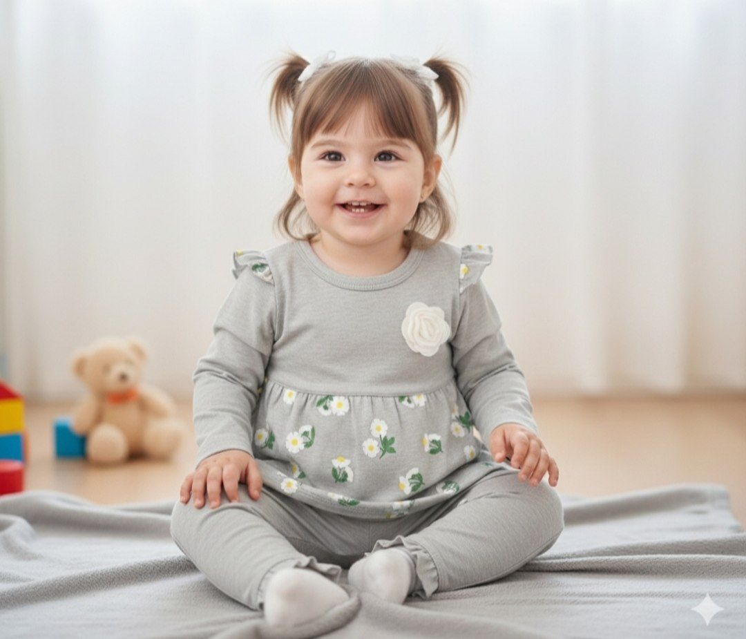 سیسمونی نوزادی دخترانه پیراهن و شلوار نوزادی دخترانه سایز ۲ تا ۴ رنگ طوسی