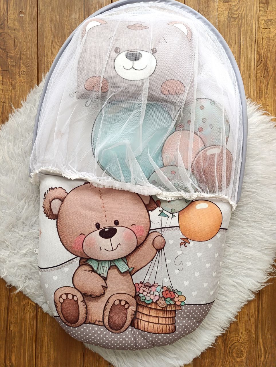 پشه بند نوزادی تشک و بالشدار مخمل مدل خرس | سیسمونی شیدا