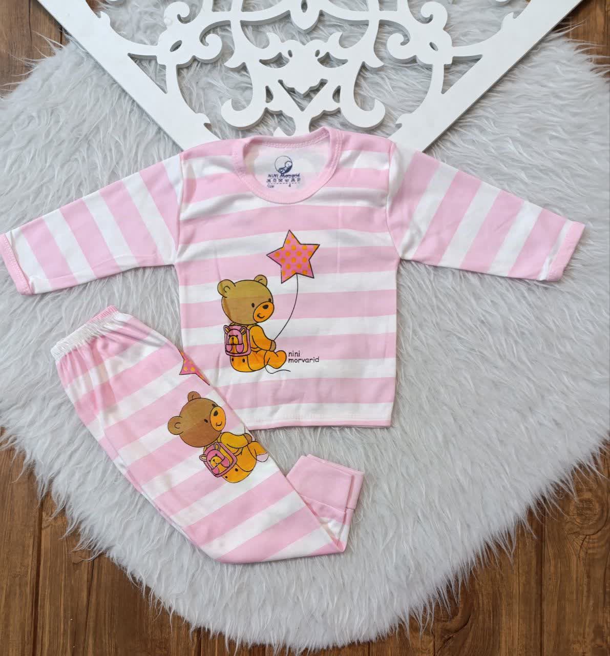 بلوز و شلوار نوزادی طرح خرس سایز ۴ تا ۶ – جنس نخ پنبه نرم و لطیف