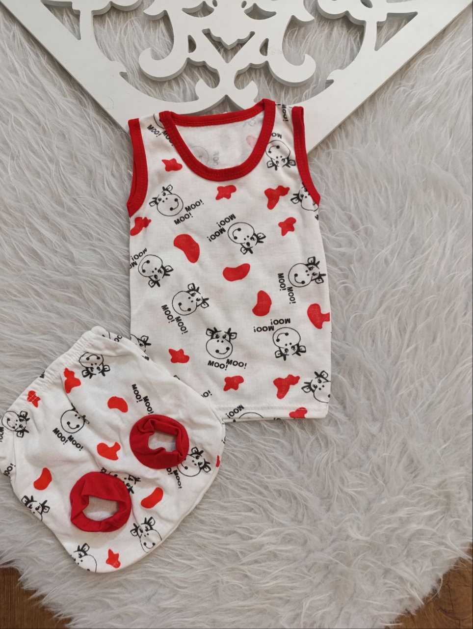 ست رکابی و شورت نوزادی طرح لکه گاوی سایز ۱ تا ۳ رنگ قرمز