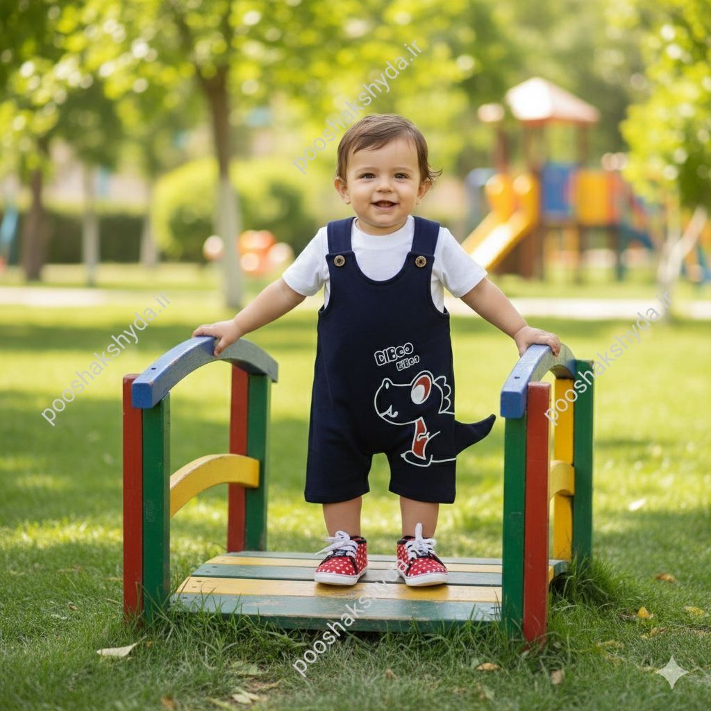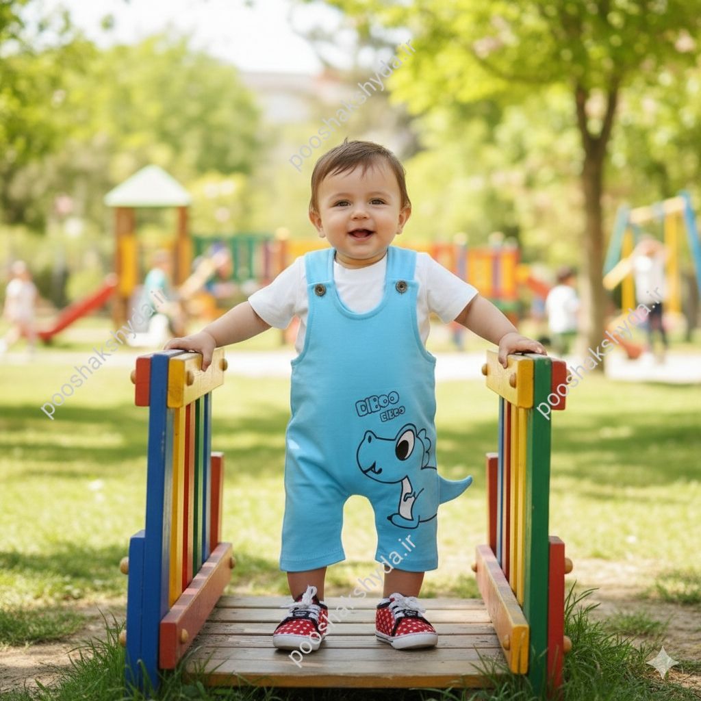 ست تیشرت و شلوار پیشبندی نوزادی طرح دایناسور Diboo - سرمهای