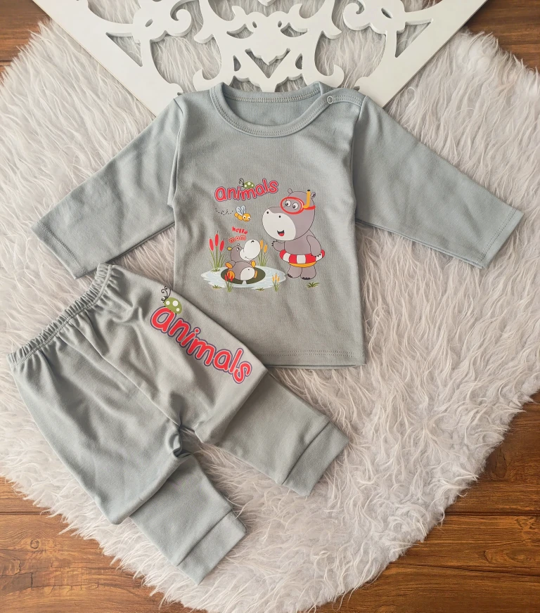 لباس نوزادی بلوز و شلوار نوزادی پنبه اعلا سایز ۱ تا ۴ رنگ طوسی