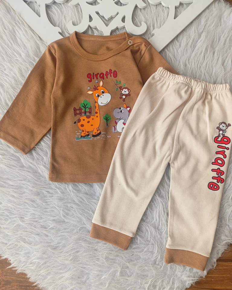 بلوز و شلوار نوزادی سایز ۴ تا ۶ پنبه اعلا طرح شیر
